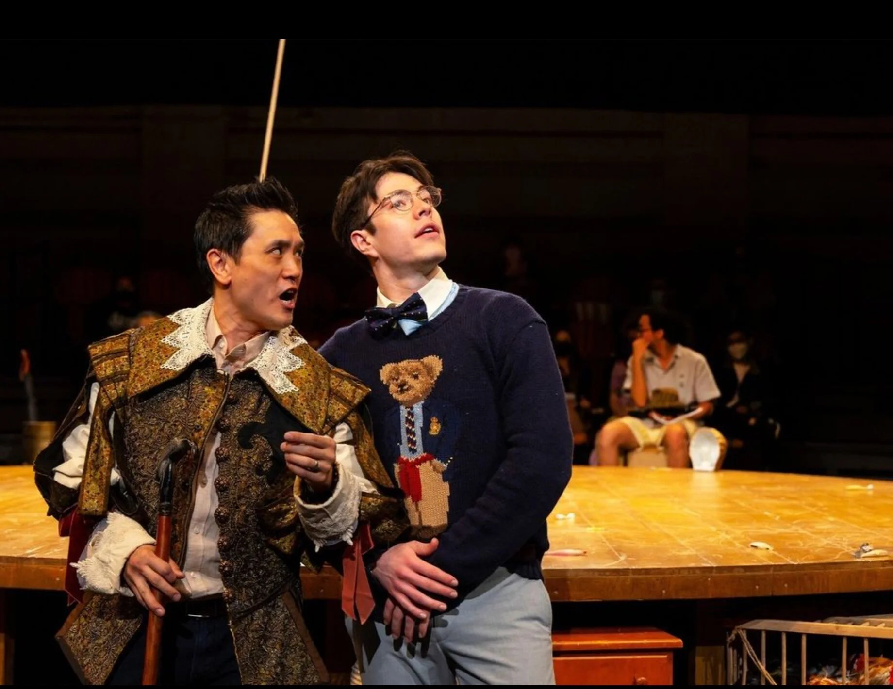 “The acting… is uniformly strong… There are Brechtian gestures and live looping and Groucho Marx glasses and plastic fish littering the stage… Tybalt (Rob Kellogg), at one point, does the worm.”