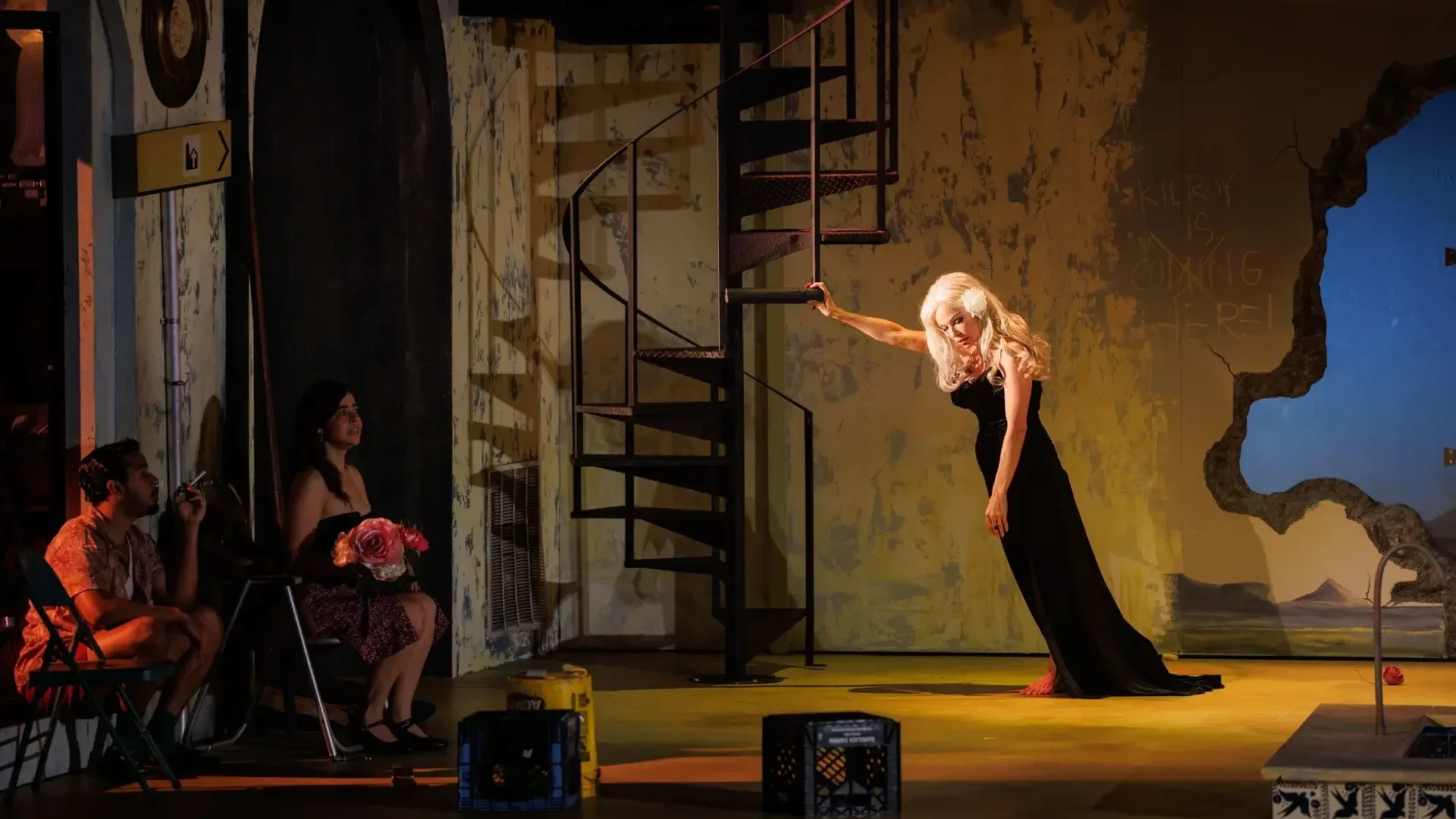 “Camino Real ... is itself a sustained series of alarms. The setting is a dusty town square, bordered on one side by the posh Siete Mares Hotel and on the other by the city’s worst quarter, fronted by the Ritz Men Only, a dangerous flophouse. Heat-dazed tourists—are we in Mexico? Morocco? Spain?—are drawn to the seductive locals, who pick pockets and give the wrong change. When a visitor can’t pay his keep, military police take aim with their pistols, and cackling street-sweepers whisk the body away.